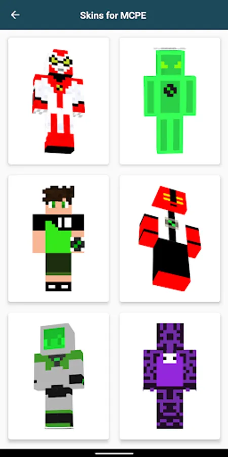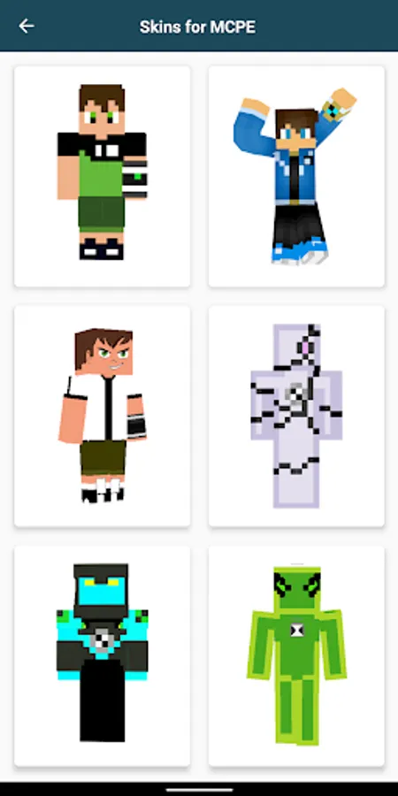 Install Ben skin for Minecraft PE and enjoy Minecraft world gameplay. With just one thing, you can already use your favorite Ben skin. Press the download or install button, then skin ben alien 10 is ready to use. Ben Alien Skins for MCPE is an application that allows you to customize your minecraft character into your favorite alien character.
