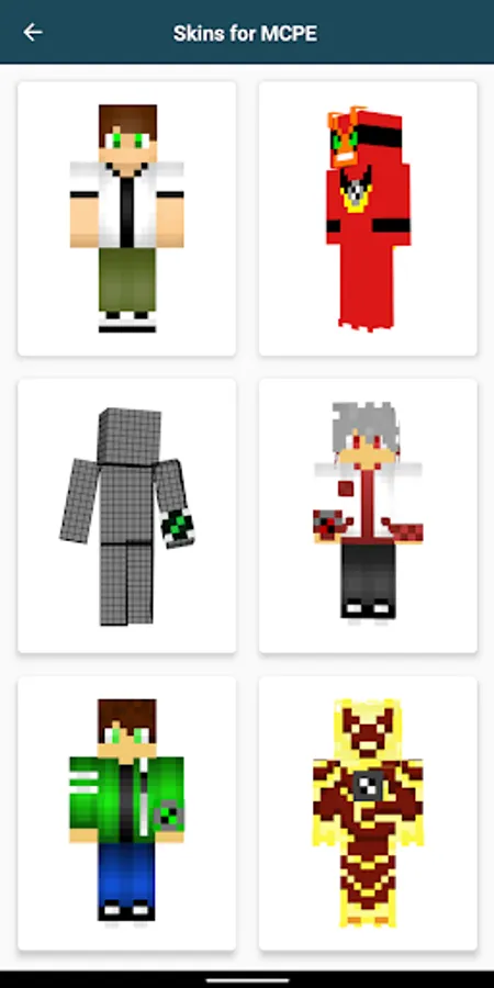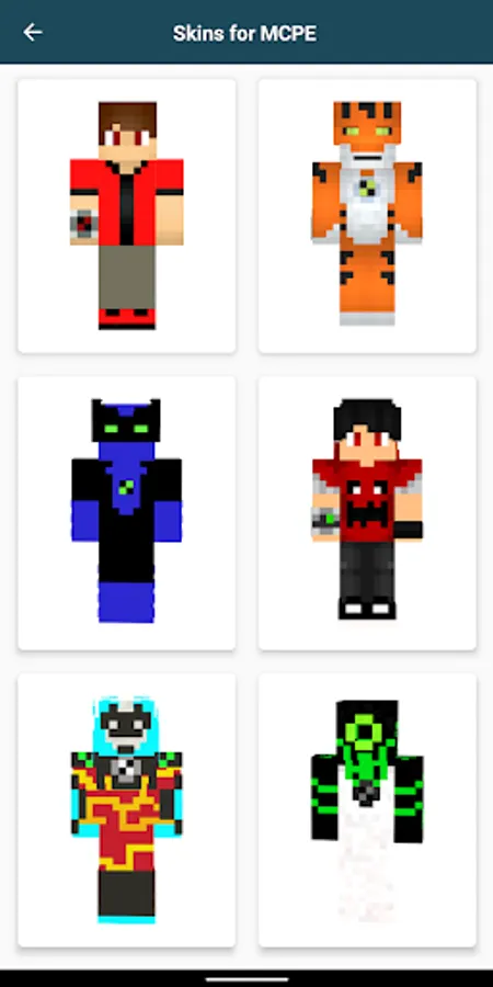 Ben skins for minecraft pe with high quality which will be the greatest collection of ben alien skins for you. Get the collection of Ben Skins for Minecraft right now. It has a simple interface that makes it easy to download and apply Ben skins for your character. Explore now Ben Alien 10 Skin for Minecraft PE.
