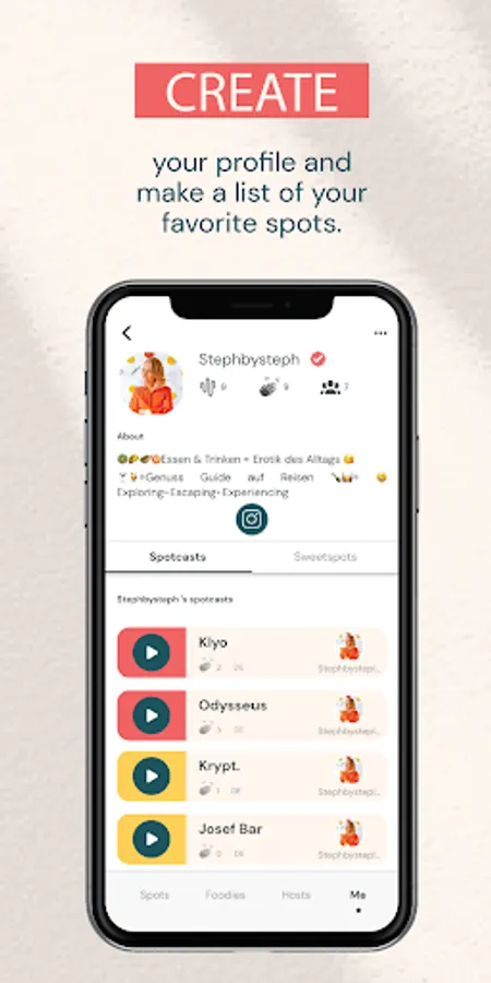 • Create your profile and link your Instagram account to attract new followers and make new friends