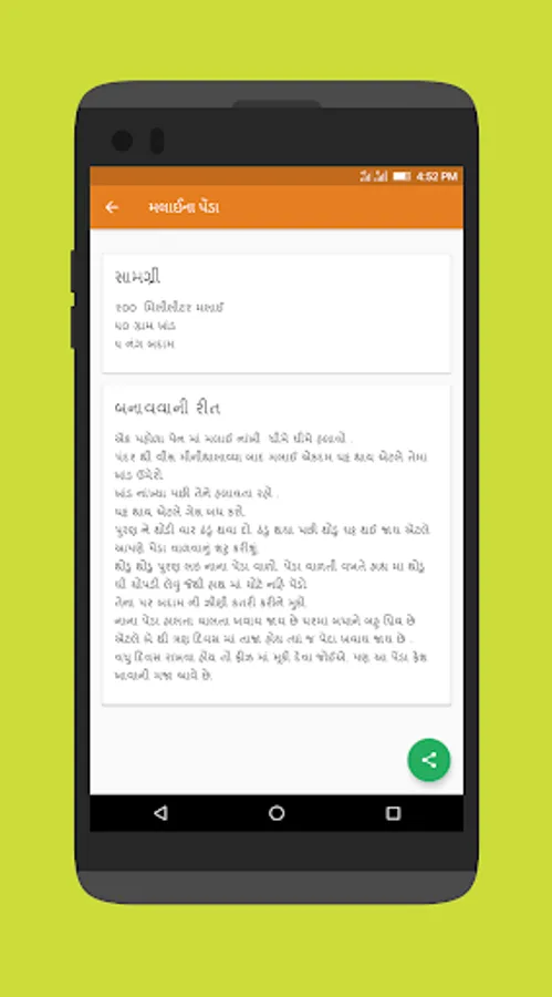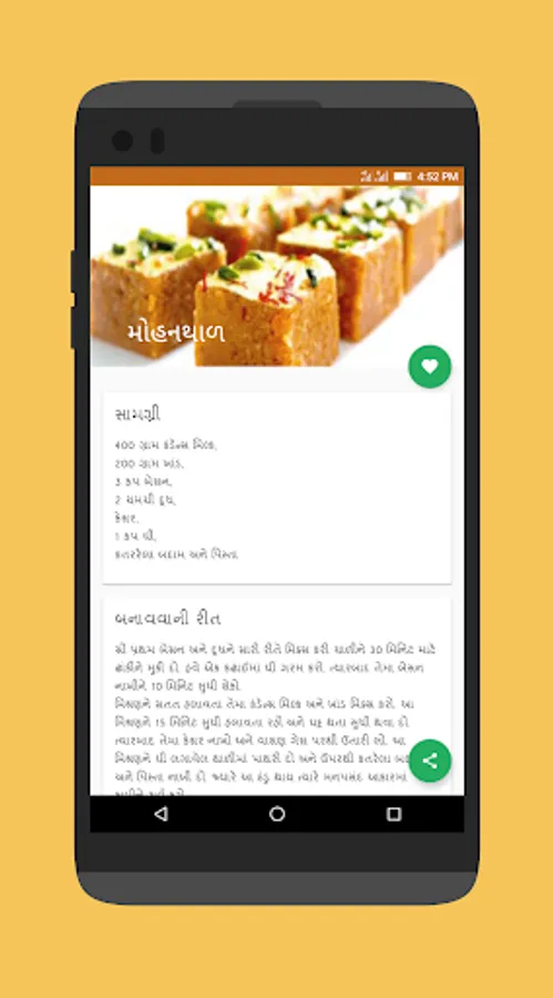 The application is very easy to use and it uses the Gujarati Language for the instruction of recipe.