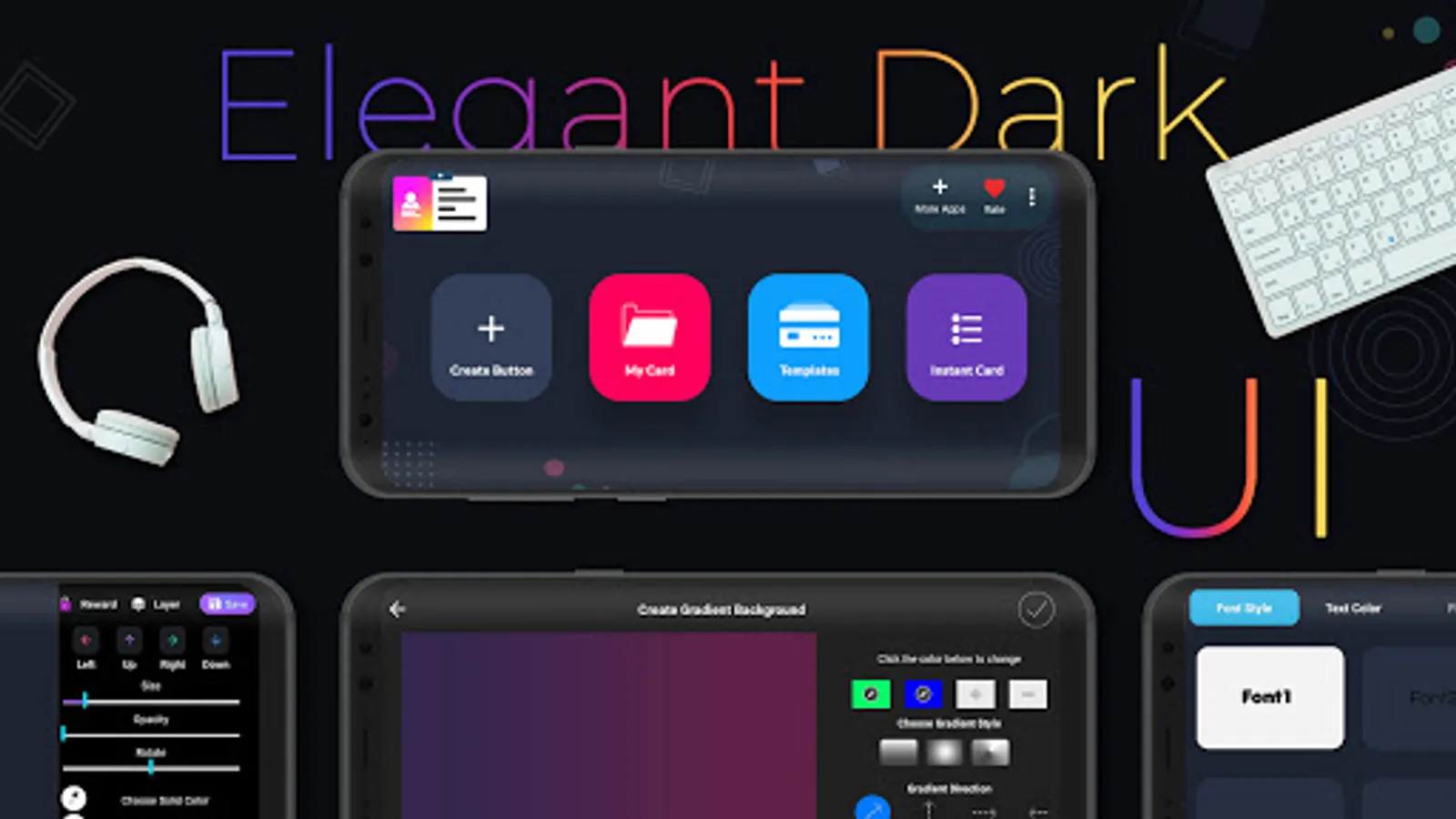 All the designs available in this app supports customization and are ready to use. You just need to fill in your details once and this app will provide you with all the pre-designed business cards.