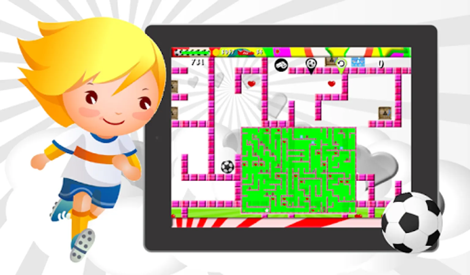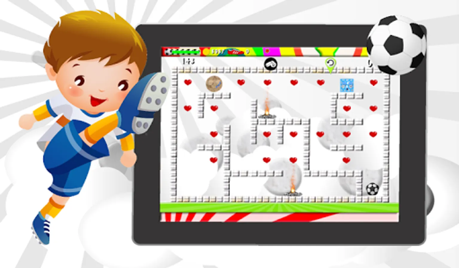 Soccer Mazes is a fun and challenging soccer and maze game to play with family and friends. The goal is to collect 20 hearts and one star within game time by maneuvering the soccer ball.