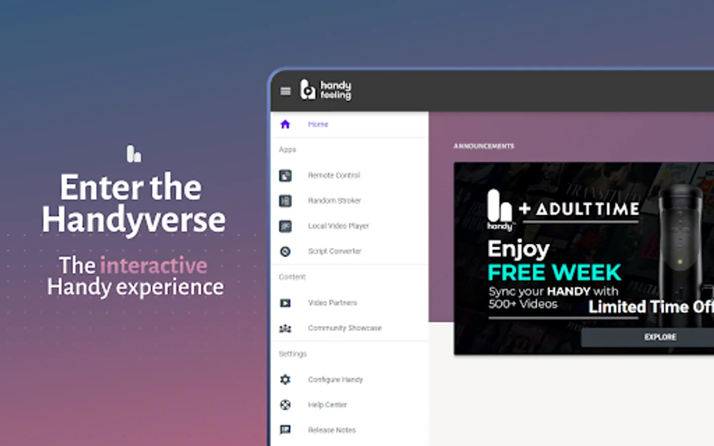 The Handyverse app is the complete interactive Handy experience. It connects your Handy to your Wi-Fi network and opens up the interactivity of the Internet for your pleasure.