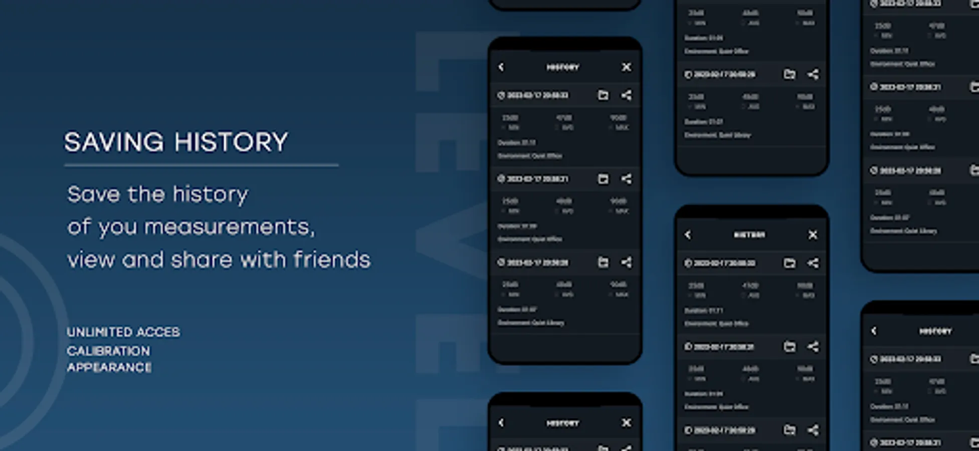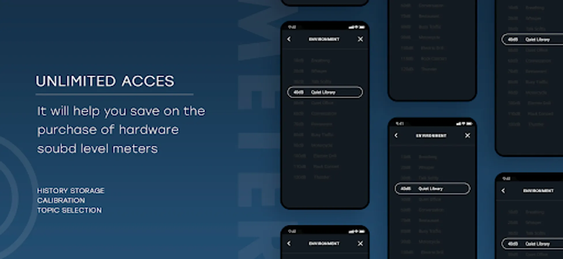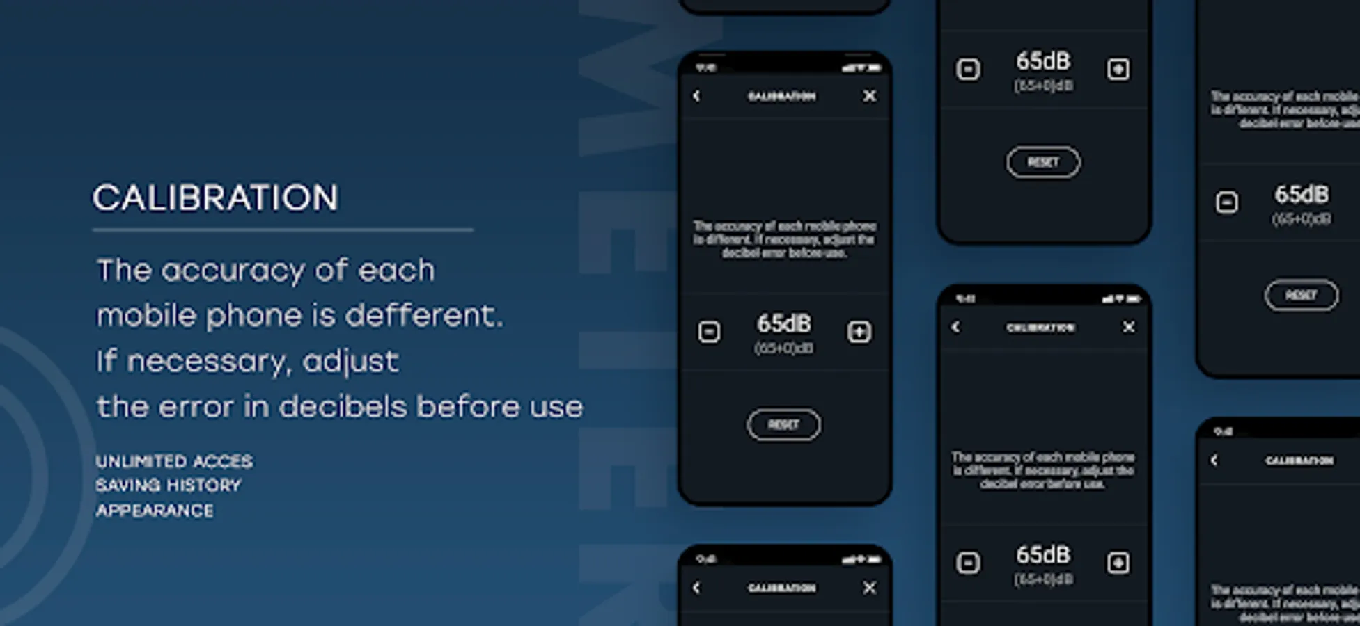 ATTENTION! This instrument is not a professional noise level meter. Most mobile device microphones are tuned to the human voice (40-60 dB). High performance microphones are not required for voice calls. Therefore, the maximum value of the sound meter decibel is LIMITED by manufacturers.