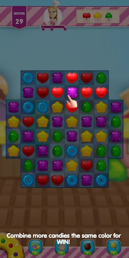 -Plan your moves by matching more candies in a row.