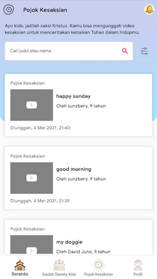Anda dapat melihat kesaksian-kesaksian murid anda.