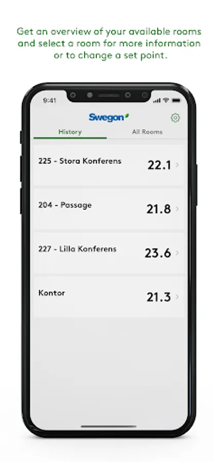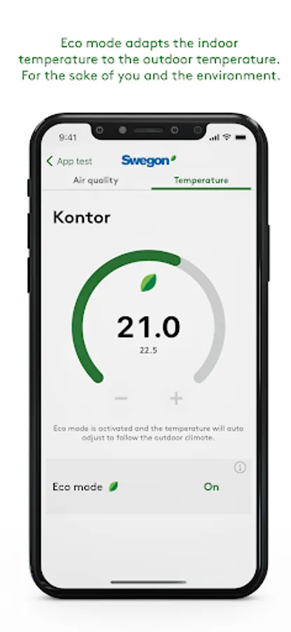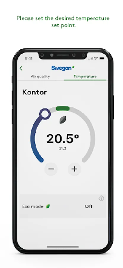 Du kan även ställa börvärdet i de rum som du har tillgång till alternativt låta systemet själv sätta en hållbar inomhustemperatur genom att använda Eko-läget.