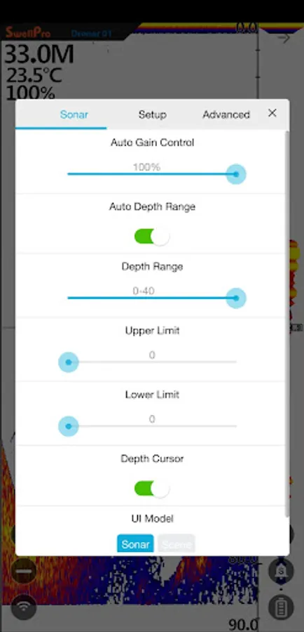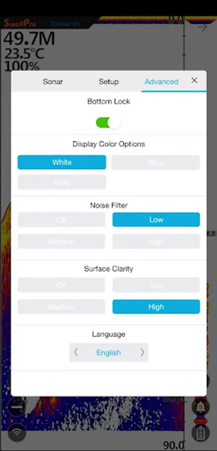 Adjust sensitivity level to filter out noise and ensure precise sonar images in various kinds of water conditions.