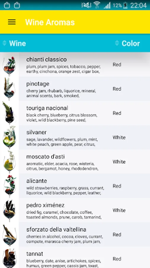 The Wine Aromas APP collects the notes of over 200 WINES among the most popular ones in the WORLD.