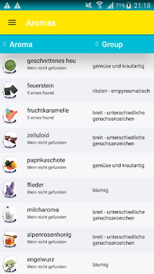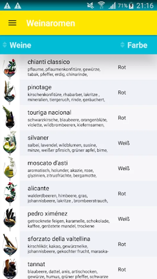 Die Weinaromen App sammelt die Geruchsanzeichen mehr als 200 WELTWEIT bekannter Weine.