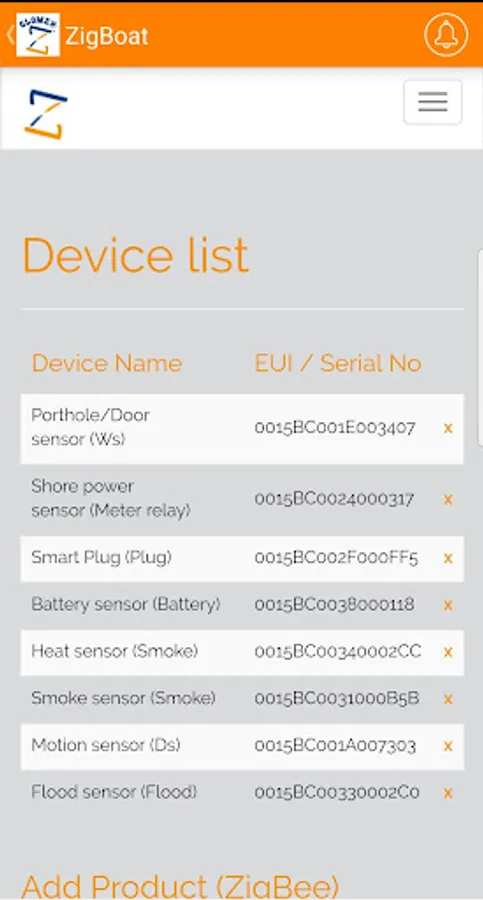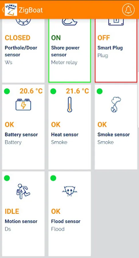 ZIGBOAT™ SENSORS THAT CAN BE USED WITH THE APP: