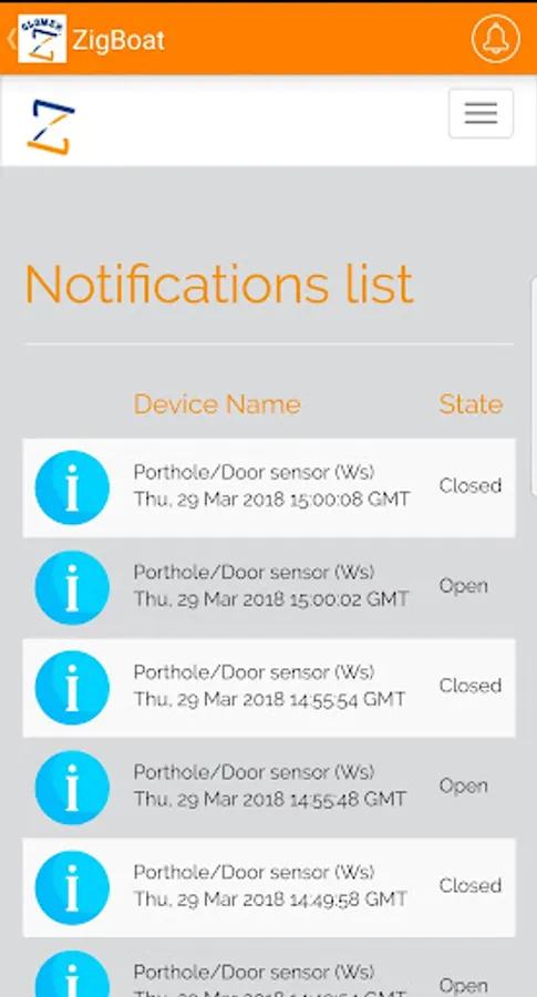You will receive alerts in case of opening and closing on doors and portholes on your boat