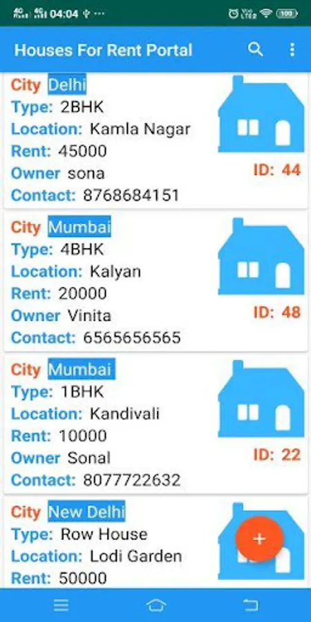 Project shares the details of houses available for rent. These details can be modified and updated by the various users. Details include City, Type, Location, Rent, Owner's detail and contact number. These can be updated in real time.