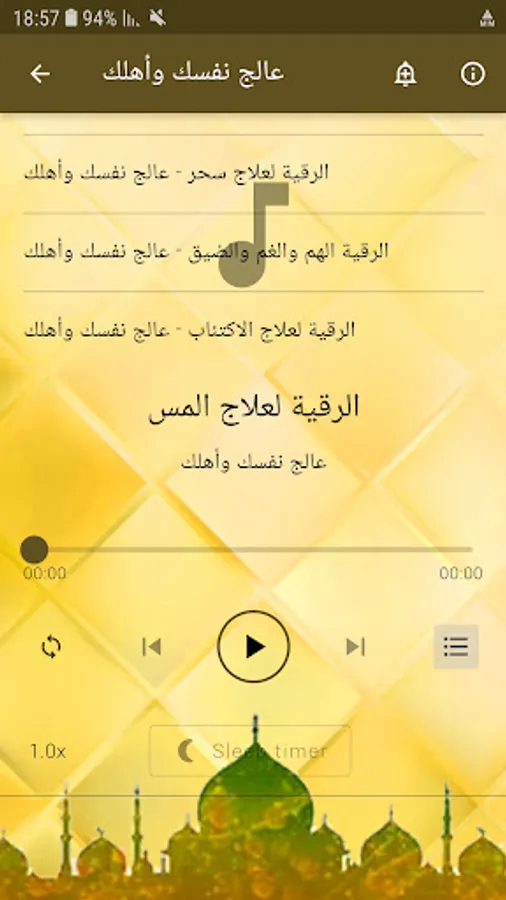 The application of the legal ruqyah Quran - treat yourself and your family without the net directed to all Muslims, it is an application that contains many legal ruqyah - treat yourself and your family audio for all matters of life that a person needs to live an excellent life.