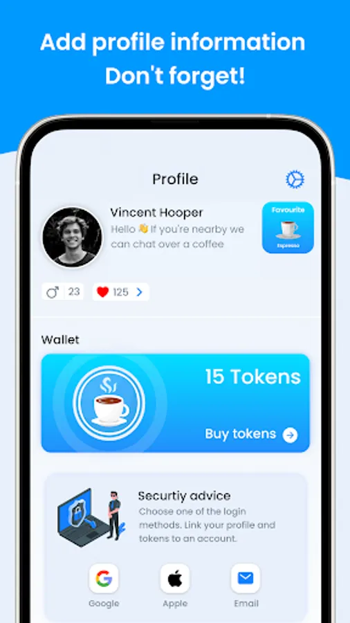 - Your profile photo is very important! Don't forget to choose and upload a suitable profile photo because it is one of the most important details that will help you find your coffee buddy.