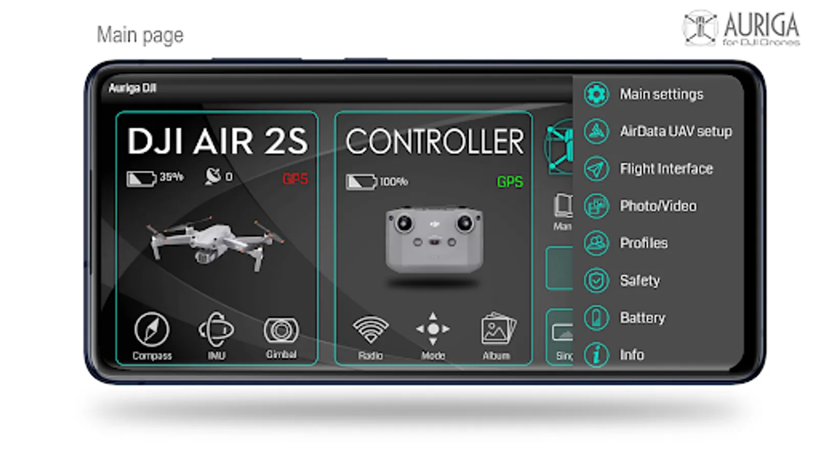 The Auriga DJI application is a first person viewer software designed for DJI drones: Mavic Mini, DJI Mini2, DJI Mini SE, Mavic Air2 and DJI Air2S.