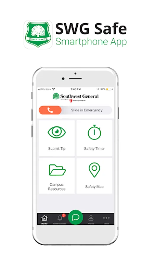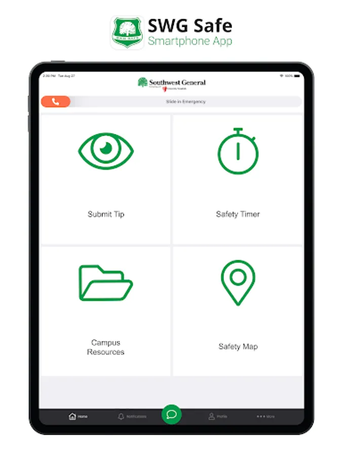 If you're in a dangerous situation, use the SWG Safe application to quickly and easily contact Hospital safety forces.