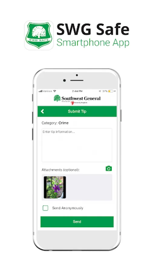 -Send text messages, as well as photos and videos of crime tips and suspicious behavior directly to university safety forces.