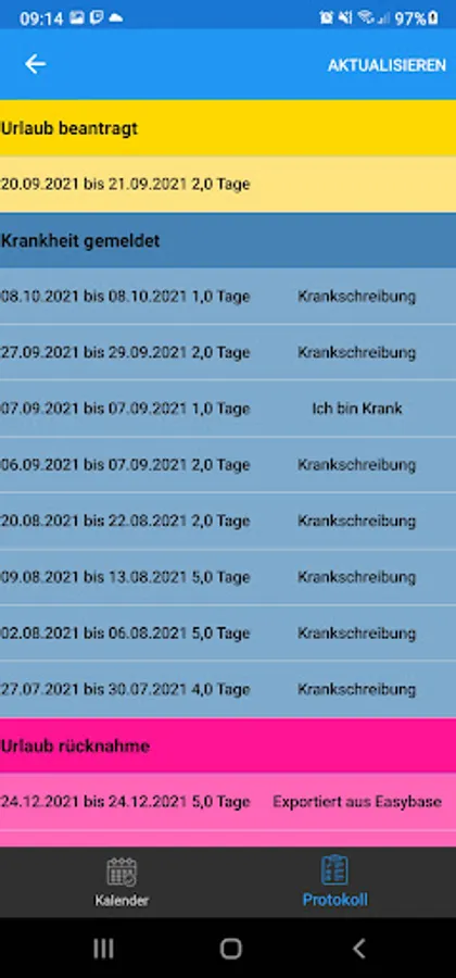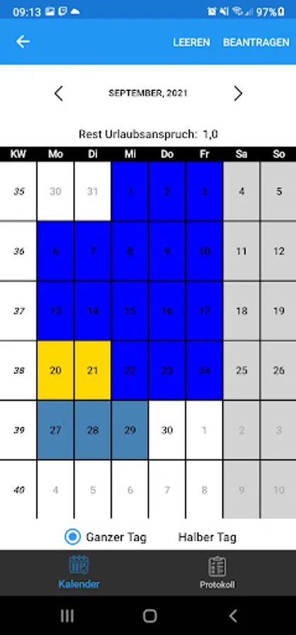 Of course, employees keep an overview of their working time account and can even request time off via the app.
