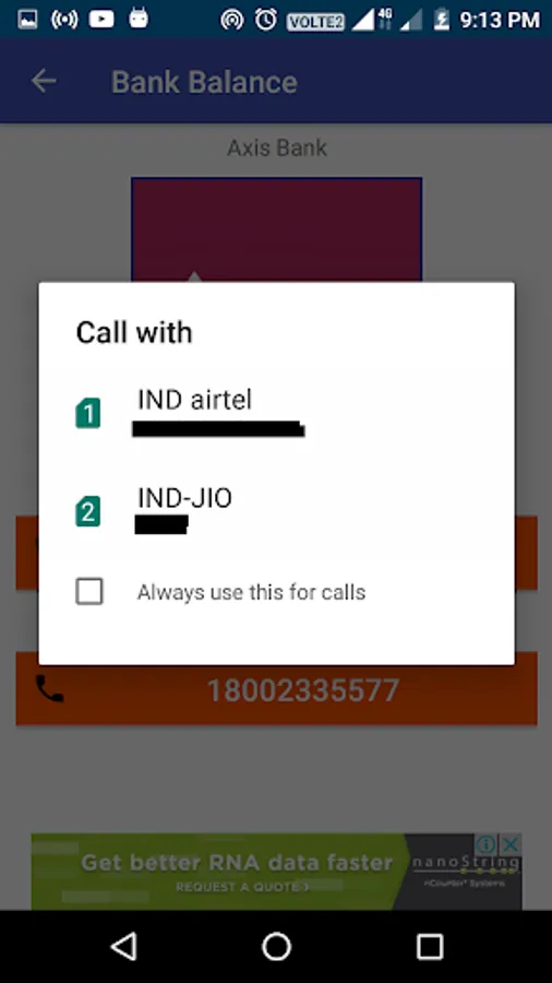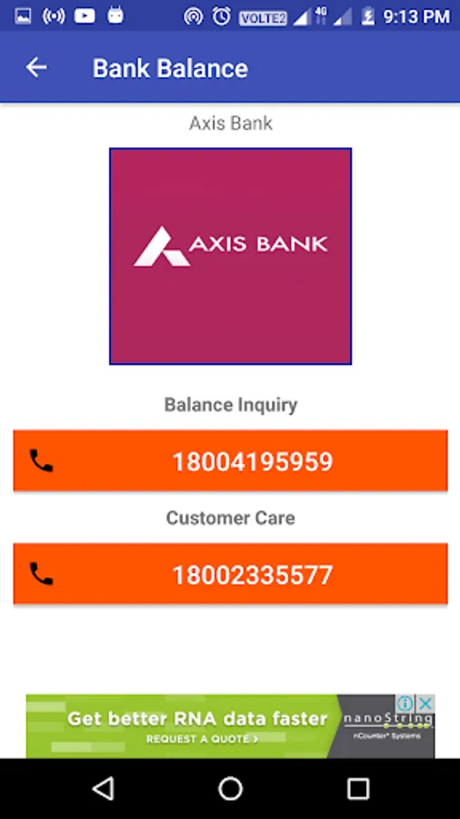 Through this app you can avoid use the of internet banking and frequent visit to ATM. counter to check your bank account balance.This app will also provide customer care contacts.There are lots of Banks are provided in list of this app.