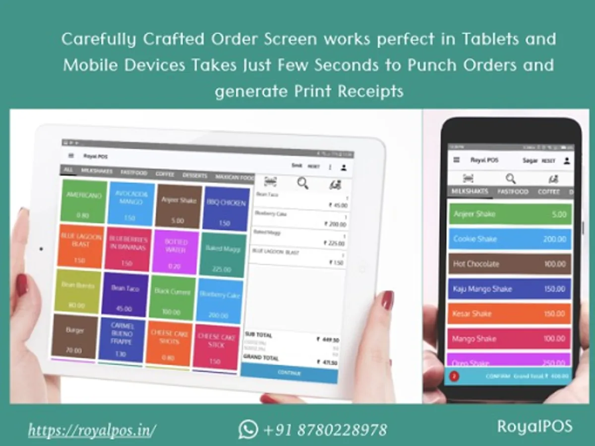 Royal POS - Point of Sale System for Take Away Fast Food Chains, Restaurants & Retail Stores - is developed with the cutting edge latest Android Technology and provides user friendly layouts for super easy Retail Point of Sale processing which is compatible with Android Tablet and Android Mobiles Too!