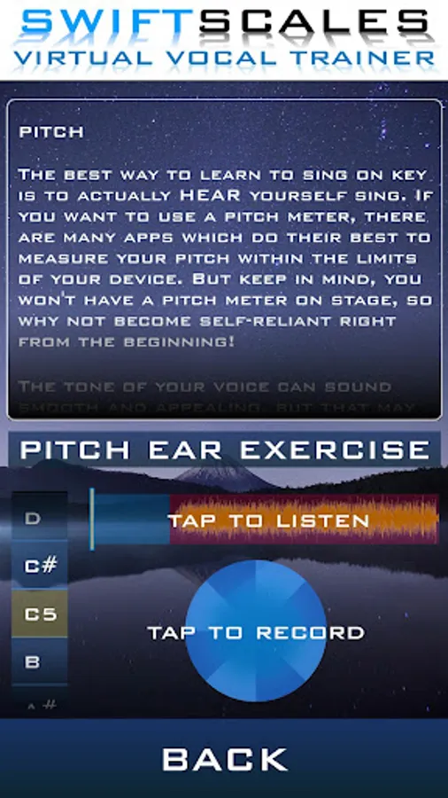 Whether beginner or master, student or teacher, SWIFTSCALES grants a lifetime of ever evolving vocal training. Singers, this is the app you've been waiting for!