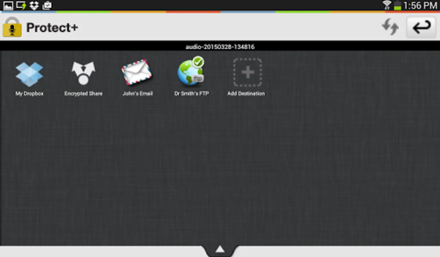 ★ Send your audio files (encrypted or unencrypted) with a single touch to your destination of choice including: