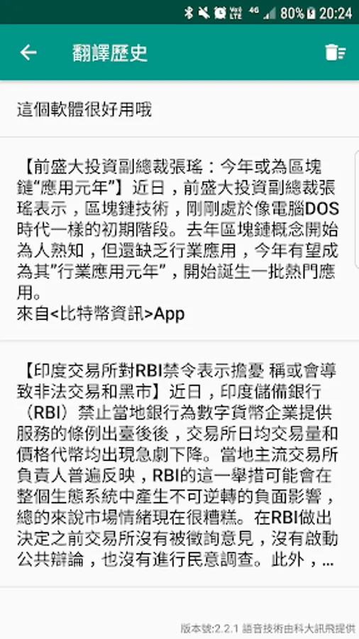 The new design, automatic translation, text translation translate intelligence into history, easy to look at any time!