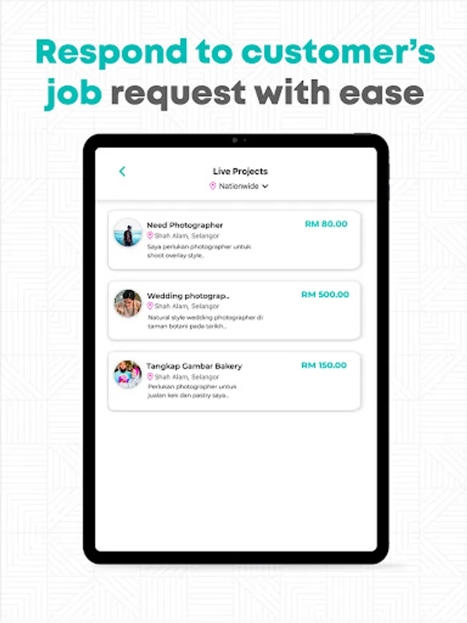 -Create a business profile, upload your portfolio & services and you’re done! Sit back, relax and just wait for customers to initiate a chat or place an order for your service.