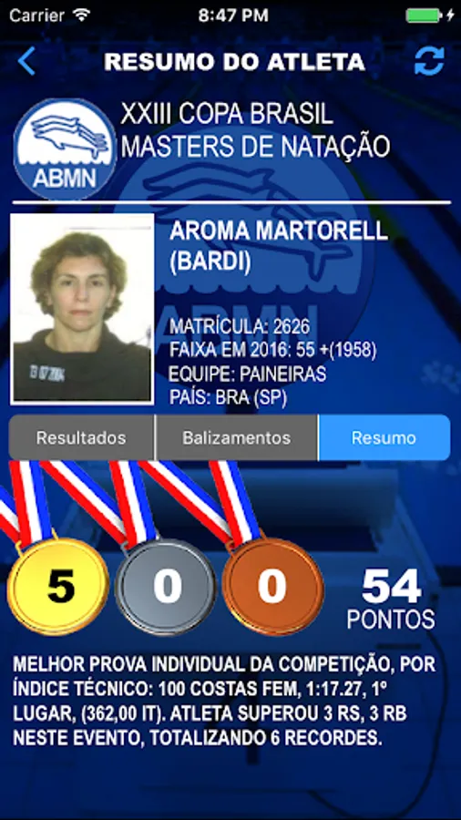Extremely simple, the application brings to athletes and coaches to ease to consult your previous results, when will compete in future competitions (streak and series) and also consult in real time the results of championships organized by ABMN.