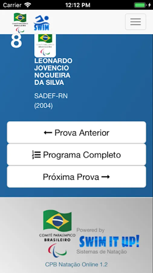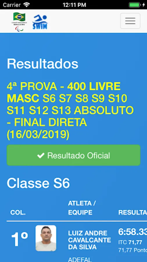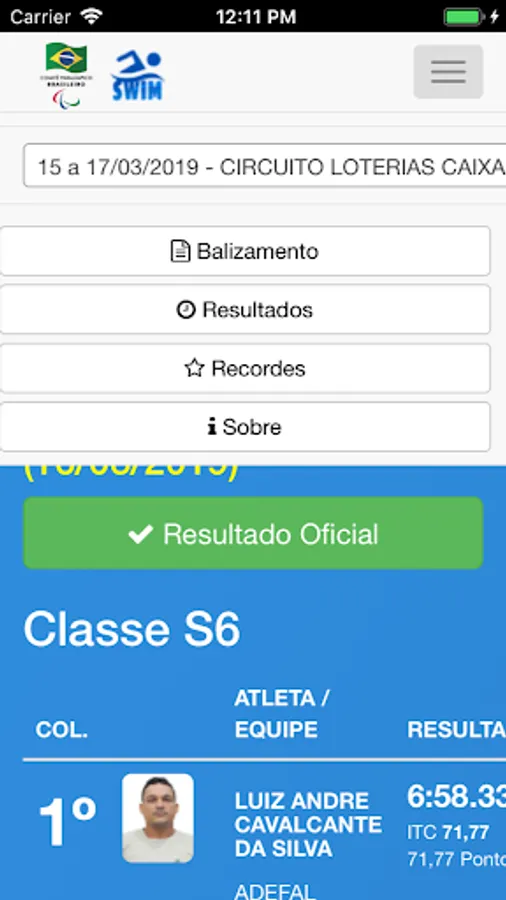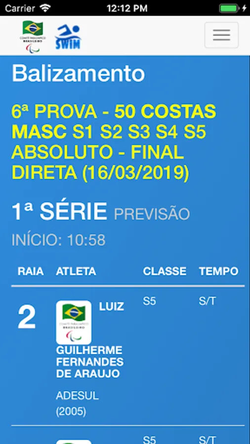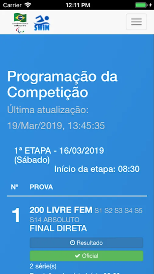 Application that provides the information of swimming competitions of the Brazilian Paralympic Committee from 2019.