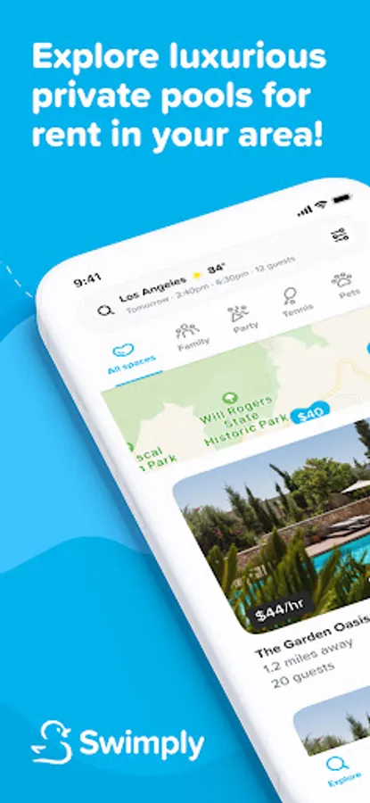 Find and book your private experience by the hour with Swimply. Whether you're seeking a private space for a few laps, planning a memorable hangout with friends, or looking for quality family time by the pool (even with your furry friend if allowed by the host), Swimply has got you covered. You can search by category, location, price, group size, amenities, and so much more. Rent your private pool with Swimply today!