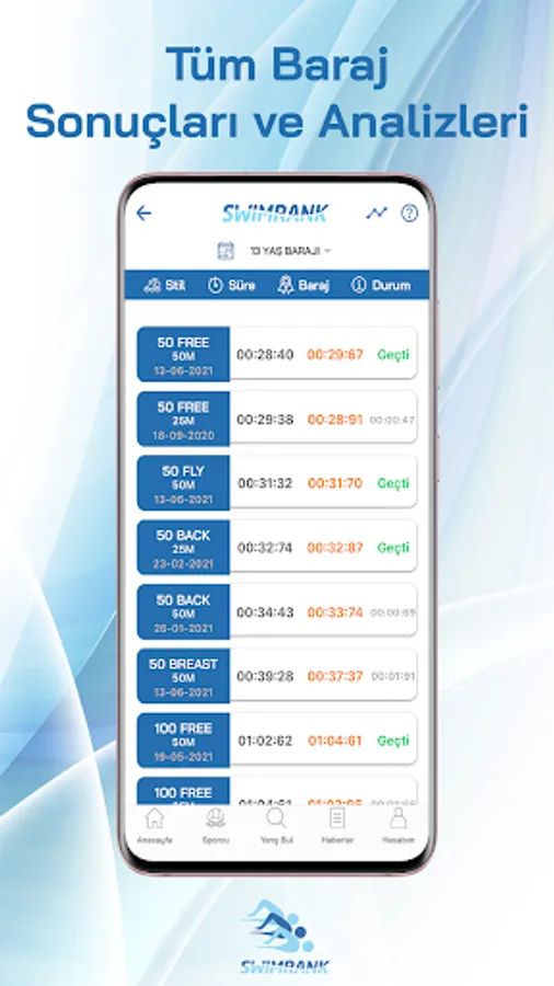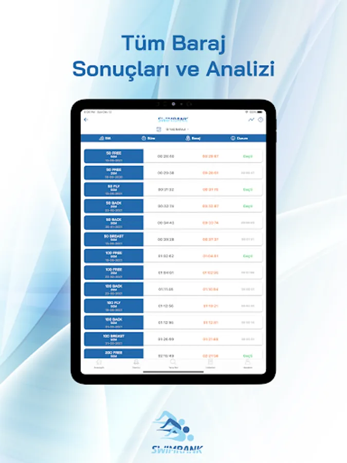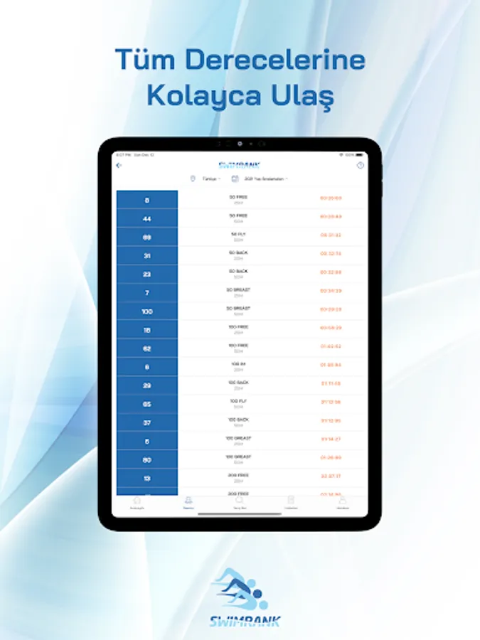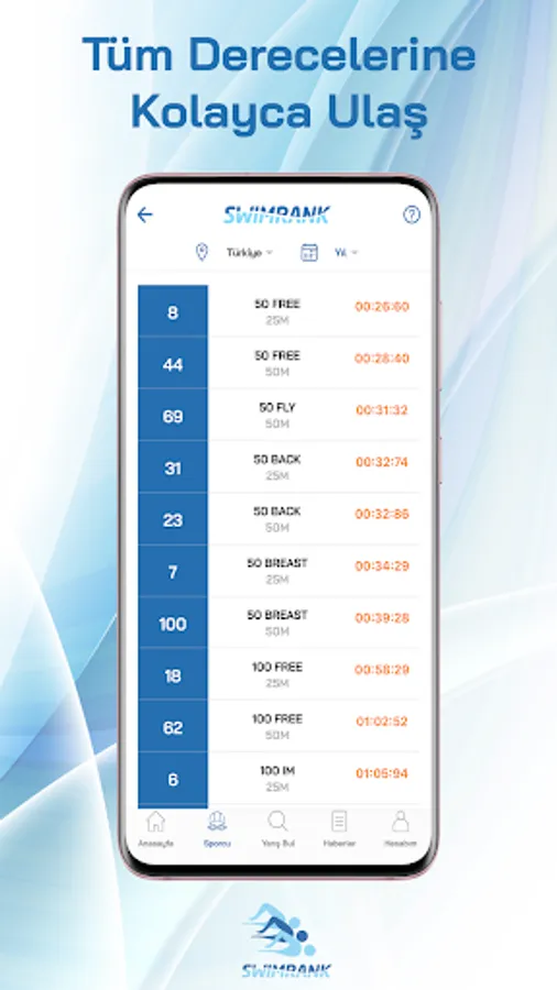 - Club, province, Turkey ranking of the best level of each swimmer,