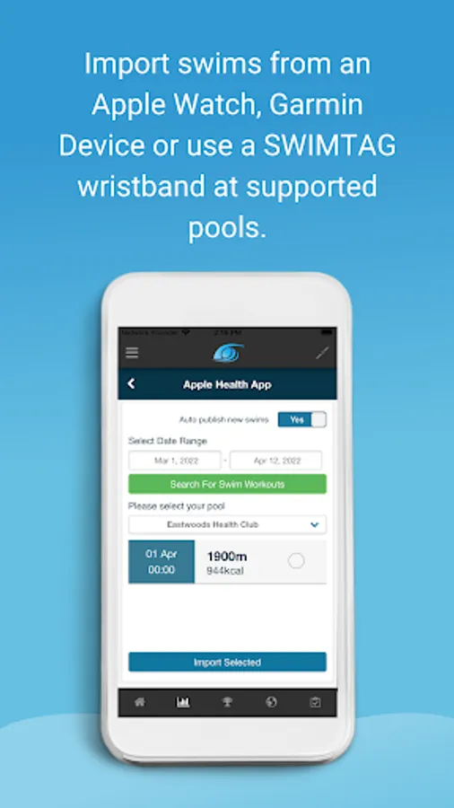 Upload your swims from your Apple Watch, Garmin Sports Watch or other compatible device.