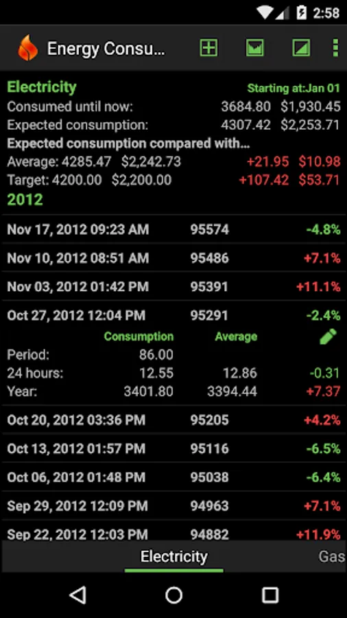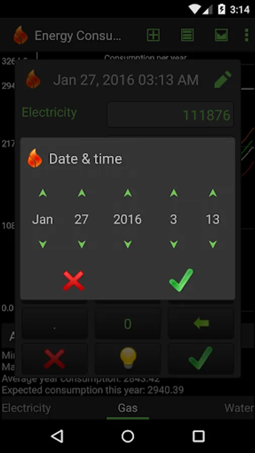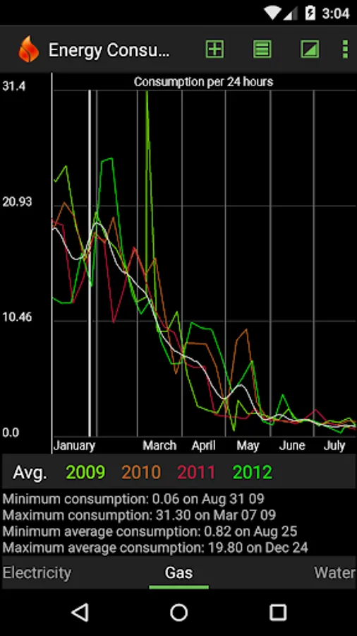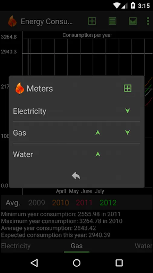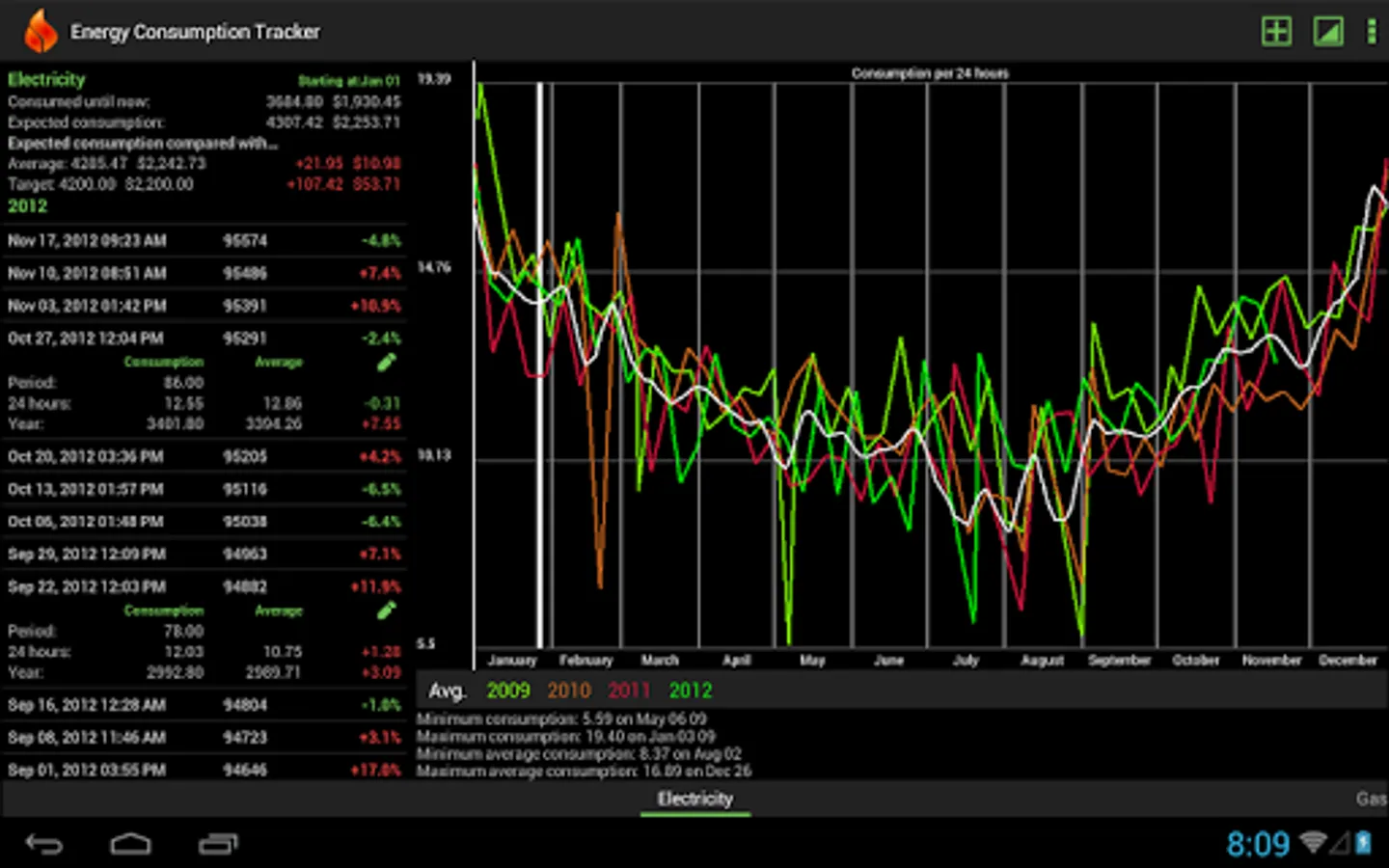 Energy Consumption Tracker is the easy way to track and get insight in your energy consumption, past and present! Add readings manually at a regular interval and compare your recent consumption with those in the past. Start right away with the 3 predefined meters Electricity, Gas and Water