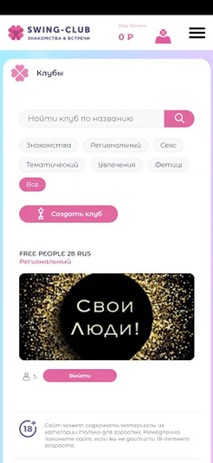 - Here you can find a club of interest or create your own according to your own rules;