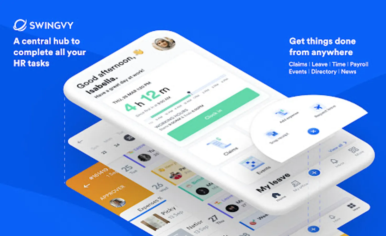 Wherever work takes you, Swingvy keeps you connected to your team and helps you manage HR tasks on the go.