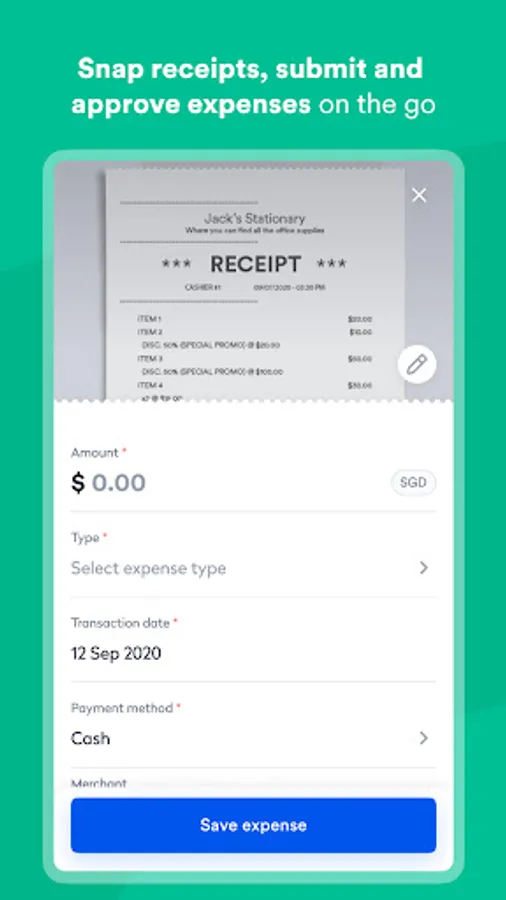• Snap photos of expense receipts directly within the mobile app to add to claims for reimbursement.