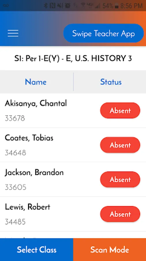 The Swipe teacher app allows teachers to record class attendance by scanning barcoded ID cards and barcodes on cell phones as students enter the classroom.