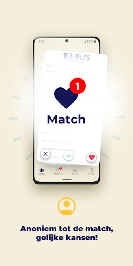 * The employer will then receive a notification that there is a candidate for the vacancy. The employer will now see your anonymous profile. If your anonymous profile appeals to the employer, they can also give you a like. This is the moment when a match arises.