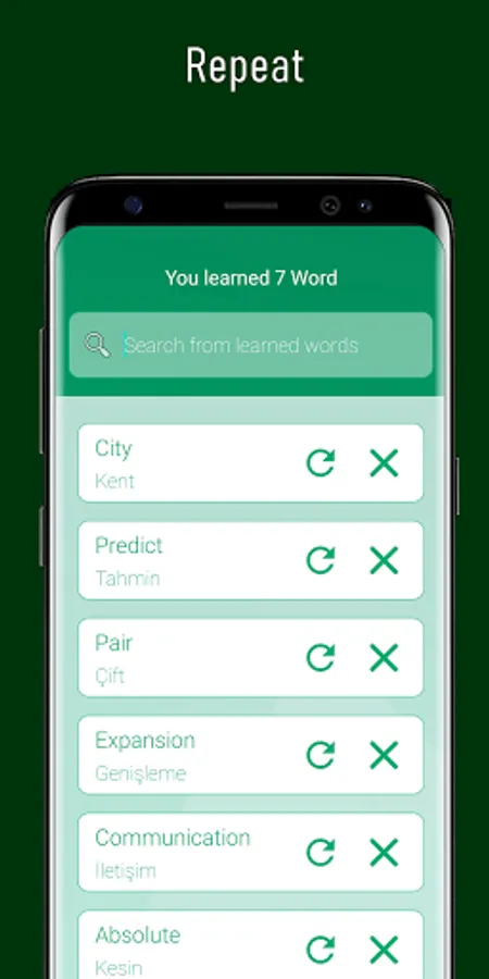 Yeni kelimeler öğrenmek için kartları sağa veya sola kaydırabilir, öğrendiğiniz kelimeleri dilediğiniz gibi tekrar edebilir veya quiz özelliği ile öğrenirken eğlenebilirsiniz.