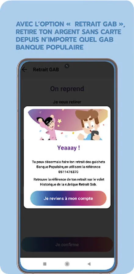 The child can instantly complete the creation of his account by downloading the Swipe By Banque Populaire application.