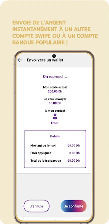- With the Swipe app: personalize their bank card, check their balance, track their transactions, receive money from their parents, pay their bills and phone top-ups, send money to a Wallet or bank account, pay a merchant through a QR code, as well as withdraw money from Banque Populaire ATMs.