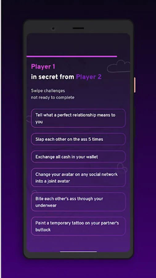 If you are ready to open up to your partner, the MySwipe quiz is the right game for you. Tell each other stories, perform actions together, win, be honest with each other, it will be hot!