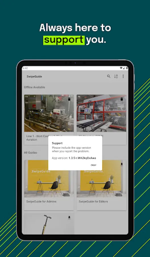 This SwipeGuide app delivers offline instructions to keep you connected to the knowledge you need, when you need it. Before using your instructions in an offline environment, simply connect to wifi and download the work instructions you need to get the job done.