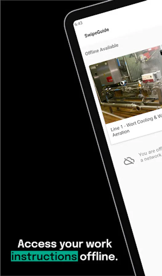 This SwipeGuide app delivers instructions offline to keep you connected to the knowledge you need, when you need it. Before using your instructions in an offline environment, simply connect to wifi and download the work instructions you need to get the job done.