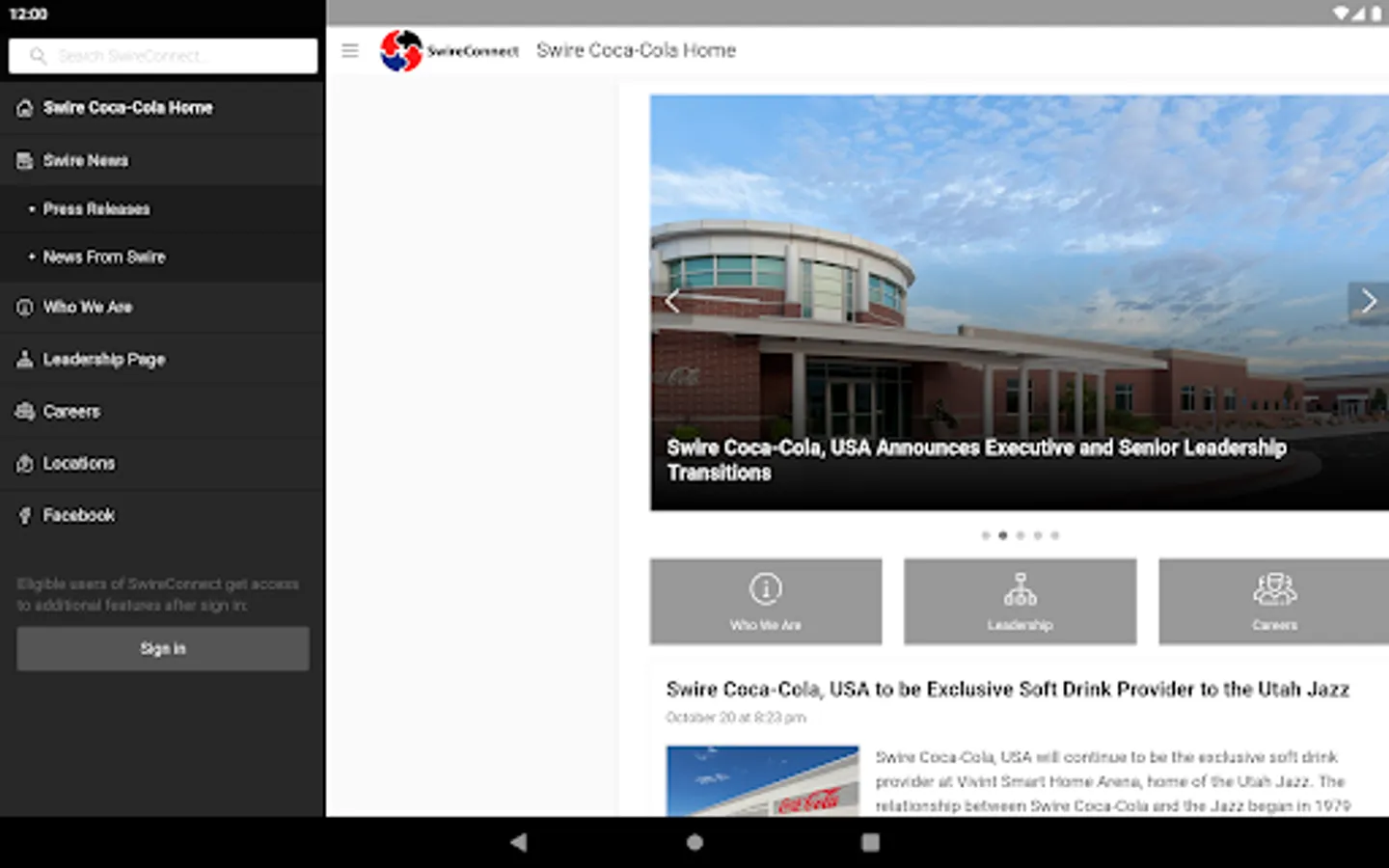 SwireConnect is the communications app for Swire Coca-Cola, USA. Swire Coca-Cola, USA, is one of the largest bottlers of Coca-Cola and other beverage brands in America. Our 7,200 employees produce and distribute more than 50 brands (including Coca-Cola, Monster Energy, and Topo Chico) across 13 states.