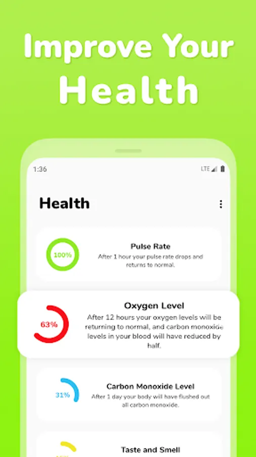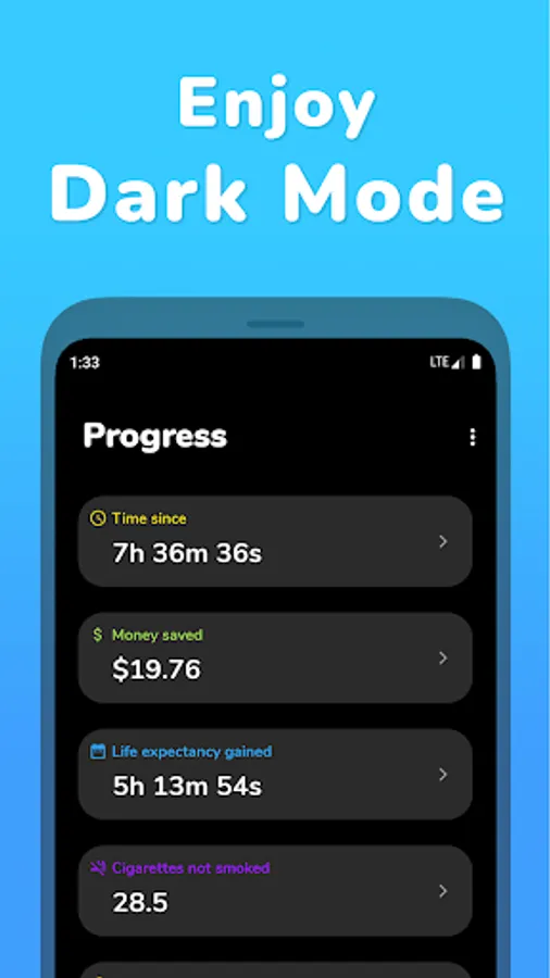 Quitting with our app is easy and effective. It gives you access to scientific health statistics, money saved statistics and much more!