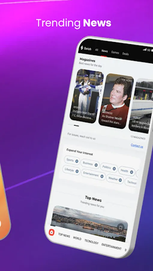 Multiple categories of the newest trends, including politics, sports, the world, fashion, and more...