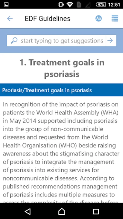 The aim of the guideline presented in this app is to provide evidence-based recommendations on systemic treatment for psoriasis. It has been developed by and for doctors involved in the treatment of psoriasis.